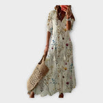 Vintažinė suknelė su Siuvinėjimu ir V formos iškirpte