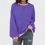 Renata - Kasdienis ilgomis rankovėmis apvalios iškirptės dryžuotas megztinis