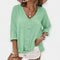 Lengvas lininis marškinys su V formos iškirpte, skirtas elegantiškoms ir gaivioms kasdienėms išvaizdoms.