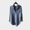 Elegantiški marškiniai pilkos spalvos su balta apykakle. Laidūs siluetas ir šiek tiek asimetrinis apdaila suteikia komfortą ir šiuolaikišką estetiką kiekvienai dienai.