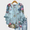 Pridėkite romantišką akcentą savo stiliui su šiuo mėlynos spalvos bluzonu, papuoštu įspūdingais gėlių raštais rožinėmis, mėlynomis ir baltomis spalvomis. Volanai ant rankovių suteikia elegancijos ir moteriškumo, o laisvas kirpimas daro jį idealia pasirinkimu bet kokiai progai.