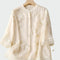 Ši kreminė bliuskutė su subtiliais gėlių siuvinėjimais yra elegantiškas ir lengvas drabužis, kuris skleidžia moteriškumą ir paprastumą. Su mygtukais priekyje ir 3/4 ilgio rankovėmis, ji užtikrina komfortą ir stilių bet kuriai progai.