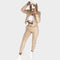 Šis elegantiškas komplektas smėlio spalvos suteikia komfortą ir stilių, puikiai tinkantis kasdienėms išvaizdoms arba atsitiktiniams pasivaikščiojimams. Modernus dizainas sujungia prigludusią striukę su užtrauktuku, siaurus kelnes ir sportinę nuotaiką.
