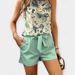 Atnaujinkite savo garderobą su šiuo ryškiu ir šaltu komplektu, idealiu šiltoms pavasario ir vasaros dienoms. Halterio viršus siūlo modernų kirpimą, kuris pabrėžia pečius, o derančios šortai su dirželiu suteikia stiliaus ir patogumo kasdienėms išvykoms.