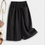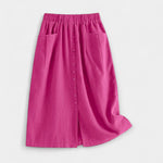 Natūrali tekstūra ir nepretenzingas stilius sijone, kuris sujungia retro žavesį su kasdieniu praktiškumu. Aukštas liemuo glaudžiai apgaubia moterišką siluetą, o priekinės kišenės suteikia patogumą ir funkcionalumą.