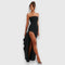 Nova suknelė su skeltuku derina išskirtinę eleganciją su kvėpuojančiu patogumu. Lengva medžiaga ir kūną formuojantis siluetas daro ją puikiu pasirinkimu vakariniams renginiams ar oficialioms progoms.