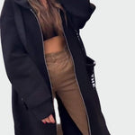 Ilgas paltas su kapišonu, derinantis eleganciją ir praktiškumą. Patogus jo pritaikymas daro jį idealiu kasdieniam naudojimui, o klasikinis dizainas suteikia stiliaus kiekvienai išvaizdai. Tai drabužis, kuris suteikia šilumos ir rafinuotumo vėsesnėmis dienomis.