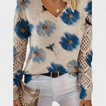 Šis elegantiškas megztinis su gėlių raštu yra tobulas pasirinkimas moterims, vertinančioms patogumą ir rafinuotą įvaizdį. Lengvas, kvėpuojantis audinys, ažūrinės detalės ir subtilūs gėlių motyvai suteikia drabužiui išskirtinio žavesio. Puikiai dera tiek prie džinsų kasdienai, tiek prie elegantiškų kelnių ar sijono ypatingoms progoms.