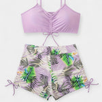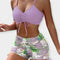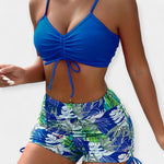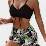 Šis dviejų dalių bikini išsiskiria tropiniu raštu ir šiuolaikine V formos iškirpte, suteikdamas gaivumo ir energijos tavo vasaros stiliui. Aukštu juosmeniu boxer tipo kelnaitės kartu su plonomis spaghetti petnešomis sukuria patrauklią ir stabilią prigludimą.
