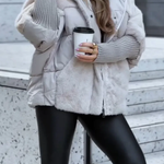 ✔️ Stilingas dizainas: Pūkinio švarko ir Teddy pamušalo derinys daro jį universaliu žiemos palydovu, kuris tinka tiek džinsams, tiek sportiškesniems įvaizdžiams.
