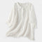 Žaismingi marškiniai iš lengvos medvilnės ir lino mišinio, derinantys eleganciją ir komfortą. Peter Pan tipo apykaklė su volanais suteikia unikalią detalę, kuri pakelia kiekvieną kasdienį įvaizdį, idealiai tinka sijonams ar kelniams.