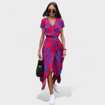 Ši nuostabi apvyniojama suknelė jungia rafinuotumą ir komfortą. Elegantiškas kirpimas pabrėžia jūsų figūrą, o sklandžiai krentanti siluetas judasi grakščiai kiekvienu žingsniu. Nesvarbu, ar tai būtų atsitiktinė pasivaikščiojimas, ar ypatingas renginys, ši suknelė užtikrina, kad jausitės visiškai patogiai.