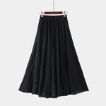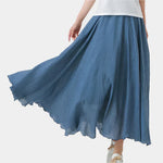 Atnaujinkite savo vasaros garderobą su šiuo ilgu sijonu iš lengvos medžiagos. Plati linija ir natūralus judėjimas sukuria eterinį įvaizdį, kuris žavi kiekviename žingsnyje.