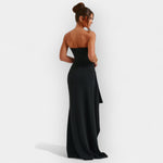 Išskirtinė maksi suknelė, kuri subtiliai pabrėžia moteriškumą. Ideali oficialioms progoms, ji siūlo nepriekaištingą prigludimą ir prabangos jausmą kiekviename judesyje.