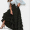 Lengvas ir įspūdingas, šis daugiasluoksnis tiulio sijonas sujungia romantiką ir eleganciją. Su aukšta juosmens linija ir klasikinė A formos siluetu, jis suteikia judesio ir rafinuotumo kiekviename žingsnyje, idealiai tinka išskirtinėms išvaizdoms.