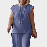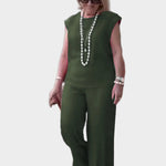 Parodykite savo rafinuotumą su šiuo purpuriniu dviejų dalių komplektu, idealiu moterims, kurios mėgsta komfortą, nesiekdamos paaukoti stiliaus. Laisvas siluetas ir išskirtinė spalva sukuria elegantišką išvaizdą bet kuriai progai.