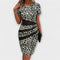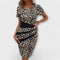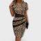 Pabrėžkite savo siluetą su šia nuostabia leopardų raštuota suknele, kuri sujungia modernų dizainą su elegantišku lašo formos iškirpimu.