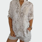 Moteriški **mėlyni marškiniai su gėlių raštu**, kurie suteikia eleganciją ir komfortą kiekvienam kasdieniam įvaizdžiui. Lengvas audinys ir laisvas siluetas daro juos idealiais šiltomis dienomis, o krūtinės kišenė prideda subtilaus stiliaus. Galima derinti su šortais, džinsais ar baltais kelnėmis, kad sukurtumėte pilną vasaros įvaizdį.