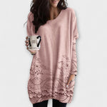 • Stilingas Ilgis: Tunikos ilgis suteikia būtent tinkamą kiekį aprėpties ir lengvai derinasi su leggingais ar siaurais džinsais.