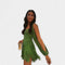 • Dvelkianti sijonas su volanais: Suteikia judesio ir moteriškumo.