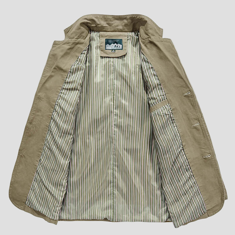 Pagamintas iš aukštos kokybės medvilnės, šis švarkas siūlo malonų dėvėjimo pojūtį ir elegantišką išvaizdą. Kvėpuojantis, minkštas ir ilgaamžis – tinkamas kasdienai.