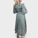 • Elegantiškas ir subtilus dizainas – žibinto formos rankovės ir nėriniai suteikia suknelės įvaizdžiui lengvumo ir rafinuotumo.