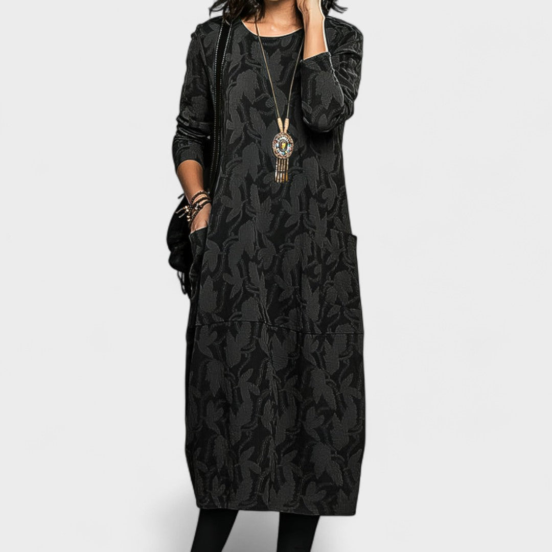 Ši rudens suknelė yra puikus pasirinkimas moterims, norinčioms sujungti komfortą ir eleganciją kasdieniame stiliuje. Pagaminta iš minkštos ir šiltos medžiagos, su ilgomis rankovėmis ir praktiškais kišenėmis, ji siūlo maksimalų komfortą vėsesnėmis dienomis. Atsitiktinis siluetas užtikrina judėjimo laisvę, o diskretus raštas suteikia ypatingumo. Ideali pasivaikščiojimams, darbui ar atsipalaidavimui su draugais.